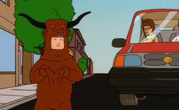 Bobby running from the mascot beating.