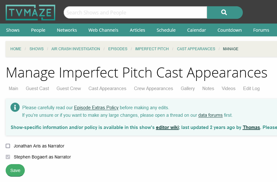 Hi, can Sir Bertrand Bell be deleted as a cast member for the following episodes of Critical Role? I added him to some he was not in.https://www.tvmaze.com/episodes/2237900/critical-role-3x07-behind-the-curtain